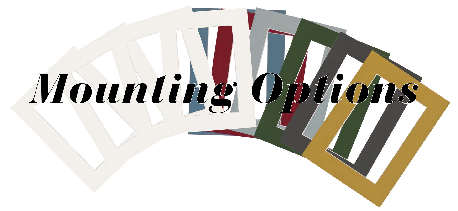 We mount fine art prints with bespoke bevel cut conservation quality mountboard to any size upto 1.2 metres.